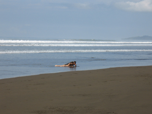 Rip Currents: You should be aware that surf beaches on the Pacific coast are sometimes frequented by rip currents, especially during periods of high surf and high tide. Rip currents can move up and down a beach and can often be seen as coffee colored water or "rips" being drawn out to sea. Be careful when swimming in high surf, staying aware of the dangers of rip currents. If caught in a rip current, swim parallel to the beach and away from the rip current and exit the water elsewhere. Don't try to swim in against a rip current, it will simply tire you out. I tell people unfamiliar with rip currents not to go over their lower chest while swimming and to keep their feet under them at all times. Sure you can body surf toward the shore but stay standing and "feel" for the outward current and avoid swimming, instead just stand. Tell others if you suspect that there may be rip currents, drowning is the number one cause of death to tourists in Costa Rica. Stay in shallower water, enjoy the beach but stay and play safe.