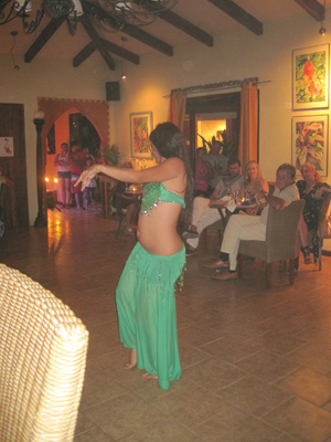 Twice in the past month belly dancers have performed in the village of Ojochal to an international audience of both expats and locals. The venue is an amazing restaurant that one would not expect to find in this small village, a classy place called Citrus Restaurant. Estelle Zaghloul is the lead dancer in the group and I believe was a national champion belly dancer in Lebanon. There were three dancers in all and their repoirtore included fan dances, traditional belly dances and some tribal dances. The show lasted nearly 2 hours with great rhythmic music, fire dancing and hard to imagine movements. The dancers captivated the audience with their hypnotic motions. With every seat full, every door and window also had standing room only crowds crooning their necks to see the performance. The audience for the show reside mostly in the developments by Pacific Lots of Costa Rica located along the Costa Ballena area in the southern Pacific region of Costa Rica. This area is one of the most pristine locations in Costa Rica and has been recently made more accessible with the completion of the Costanera highway extension connecting Quepos and Manuel Antionio to Dominical and points further south.
